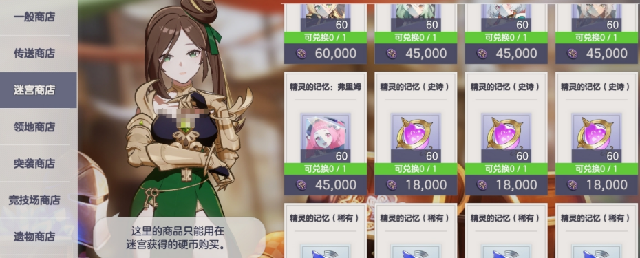 【迷宫商店】使用迷宫硬币,主要通过挑战迷宫副本获得。优先级明确:锁定目标史诗精灵后,集中兑换其专属记忆碎片;若已达成图鉴收集目标,则可转向随机史诗精灵记忆,提升获取稀有单位的概率。
