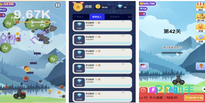 这是款具备站桩式射击玩法的“打石头”模拟游戏,你可以控制屏幕下方的炮台对石头进行打击,操作手感和爆破特效都十分硬核,并不复杂的射击走位玩法操作令人直呼过瘾,自由升级火炮提升爆破威力的设定也是亮点,更有四种能力各异的道具能增加炮台伤害,精心设定的多维度关卡也带来了源源不断的刺激感。