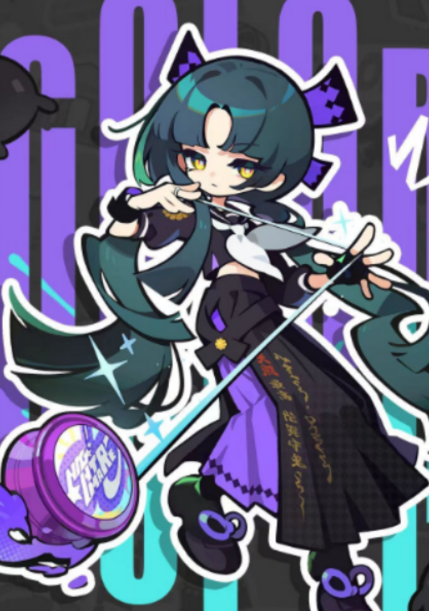月读为紫色系高爆发型角色,隶属学生会,担任副会长一职。其人设融合外向乐观与适度叛逆特质,日常热衷赛车竞技与社团实践,偶有逃课行为。战斗定位为范围清场与能量供给双修型输出者:技能可强制聚怪至屏幕中央并施加高额群体伤害;同时具备大范围涂色覆盖效果,并为全队提供关键能量回复,实现攻辅一体的战术价值,在应对密集敌群时效率尤为突出。