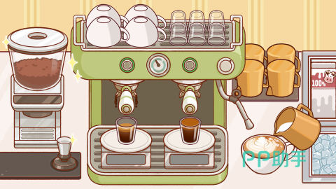 本作英文名为Good Coffee, Great Coffee,由打造《可口的披萨》的原班开发团队倾力呈现。延续前作标志性的清新画风与温暖叙事,本作将咖啡馆经营的细腻流程深度还原——从豆子研磨、水温控制、萃取时间,到拉花手法,每一步都需玩家亲手操作。全手绘风格界面采用柔和暖色调与圆润线条,咖啡机、吧台、木质桌椅等元素共同营造出极具亲和力的视觉氛围;配合真实采样的研磨声、蒸汽喷射音效与轻柔背景音乐,听觉与视觉双重疗愈感油然而生。