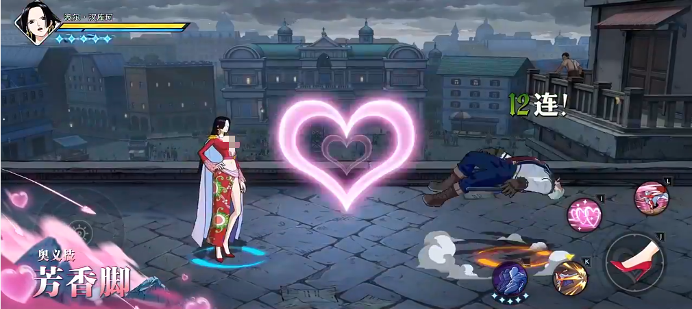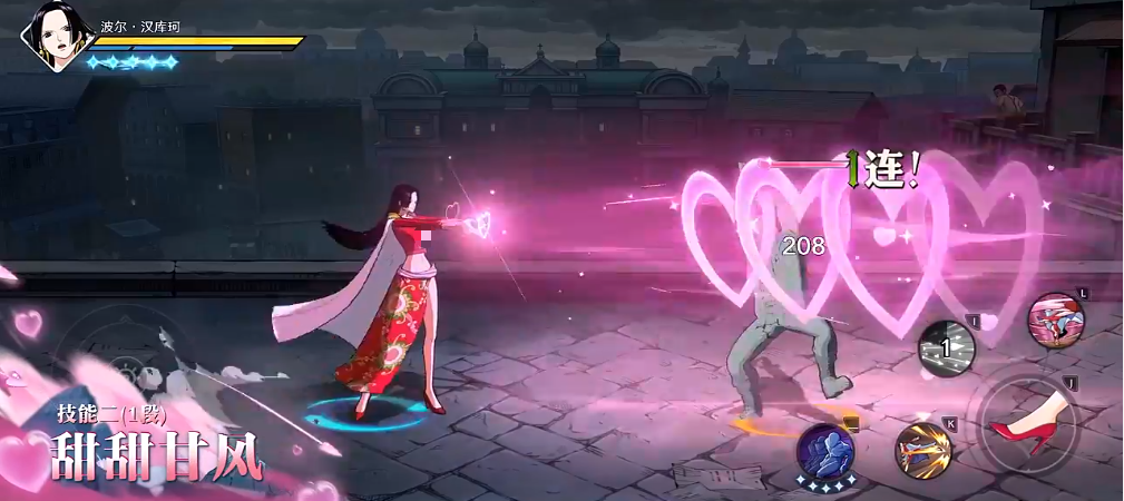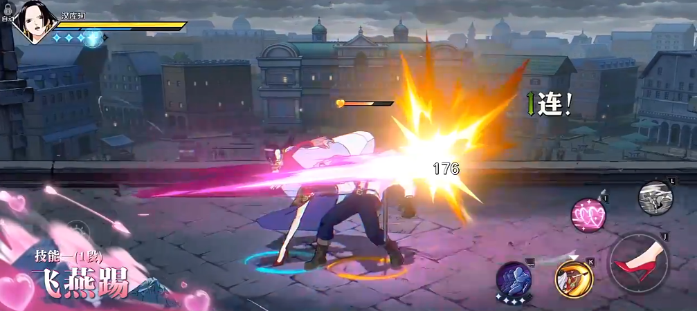 一技能命名为“飞燕踢”,具备点按与长按双模式:点按状态下分为三段——首段直线飞踹、二段斜向旋转踢、三段空中高弹腿下劈(附带抓取效果);长按则激活果实能力融合机制,额外消耗精力,全面提升各段性能:飞踹射程延伸,并获得对飞行类敌方技能的闪避判定;强化后的二段可微调Y轴位移;三段命中后施加阶段性石化效果,且在强化状态下允许通过普攻按键提前中断技能并衔接普攻末段,显著提升连招自由度。