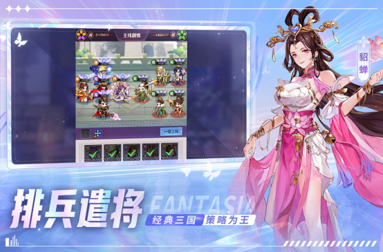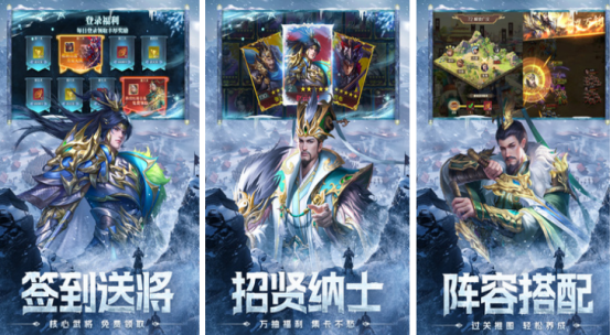 2d的风格渲染出了奇特的三国世界,您作为其中的主角,需要在神奇的三国大陆当中实现攻城略地的重任,其中有众多优秀的武将,等待玩家来随意招募,比如曹操以及诸葛亮等人。这些人物都有各自的优势,在原有的卡牌玩法上又融入了策略slg的元素,通过完成任务的方式就能获得很多优秀的武将。