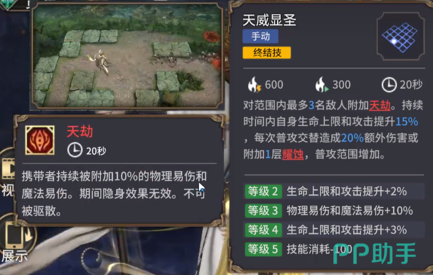 至于杨戬的终结技“天威显圣”,他对范围内最多三个敌人施加“天劫”,并且在持续时间内,自己的生命上限和攻击力都会得到提升20%。与此同时,杨戬的普攻范围也会扩大,攻击时还会造成额外20%的伤害,甚至能够附加一层耀蚀效果。换句话说,杨戬的终结技不仅能大幅增强他自身的输出,还能让周围的敌人处于更为被动的状态,极大提升了作战的灵活性和爆发力。
