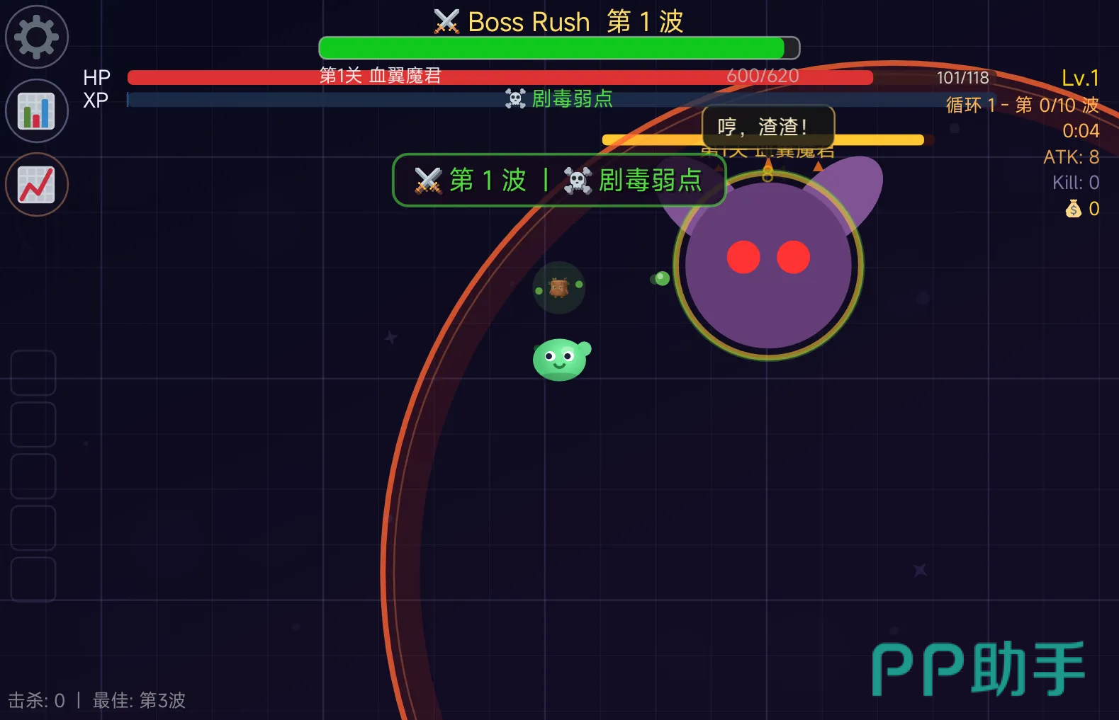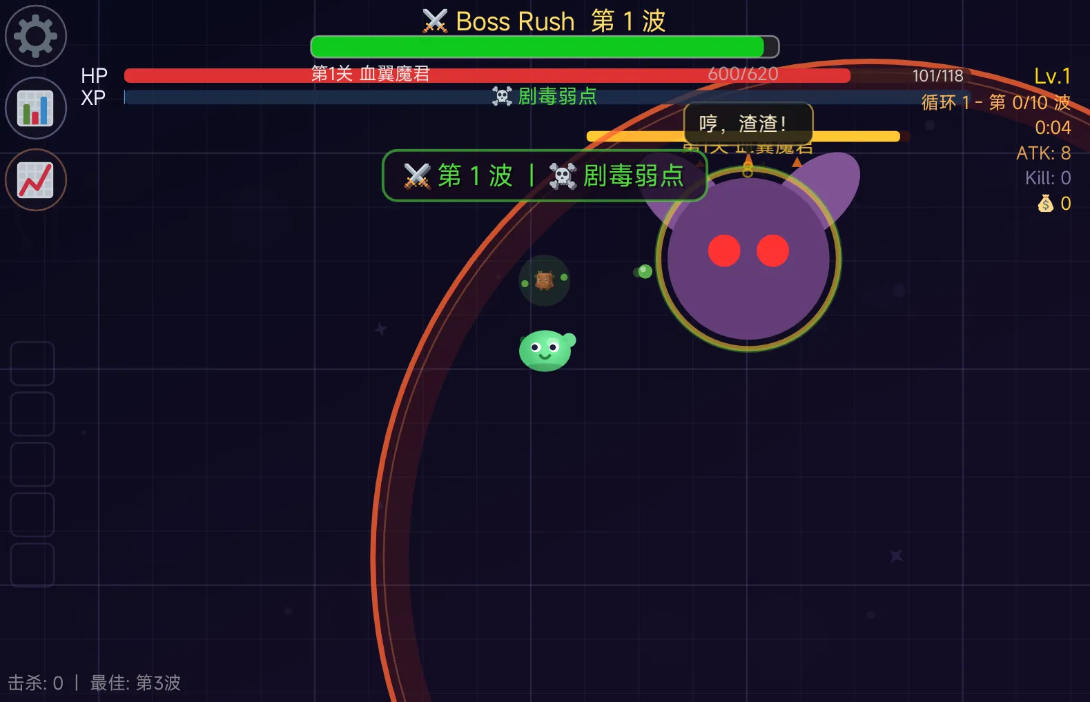 关于游戏机制:本作采用类Roguelite关卡推进模式,玩家初始操控一只基础形态史莱姆,在连续闯关中积累经验值并实现阶段性进化。角色成长依赖实战击败敌人获取资源,不可跳过或加速升级流程。系统内置超二十种主动/被动技能,支持自由组合构建流派——例如“暴击穿透流”“持续腐蚀流”或“召唤协同流”,策略维度丰富。开局提供十种差异化初始角色供选择,每种附带独特起手技能与成长倾向,显著提升重复可玩性。