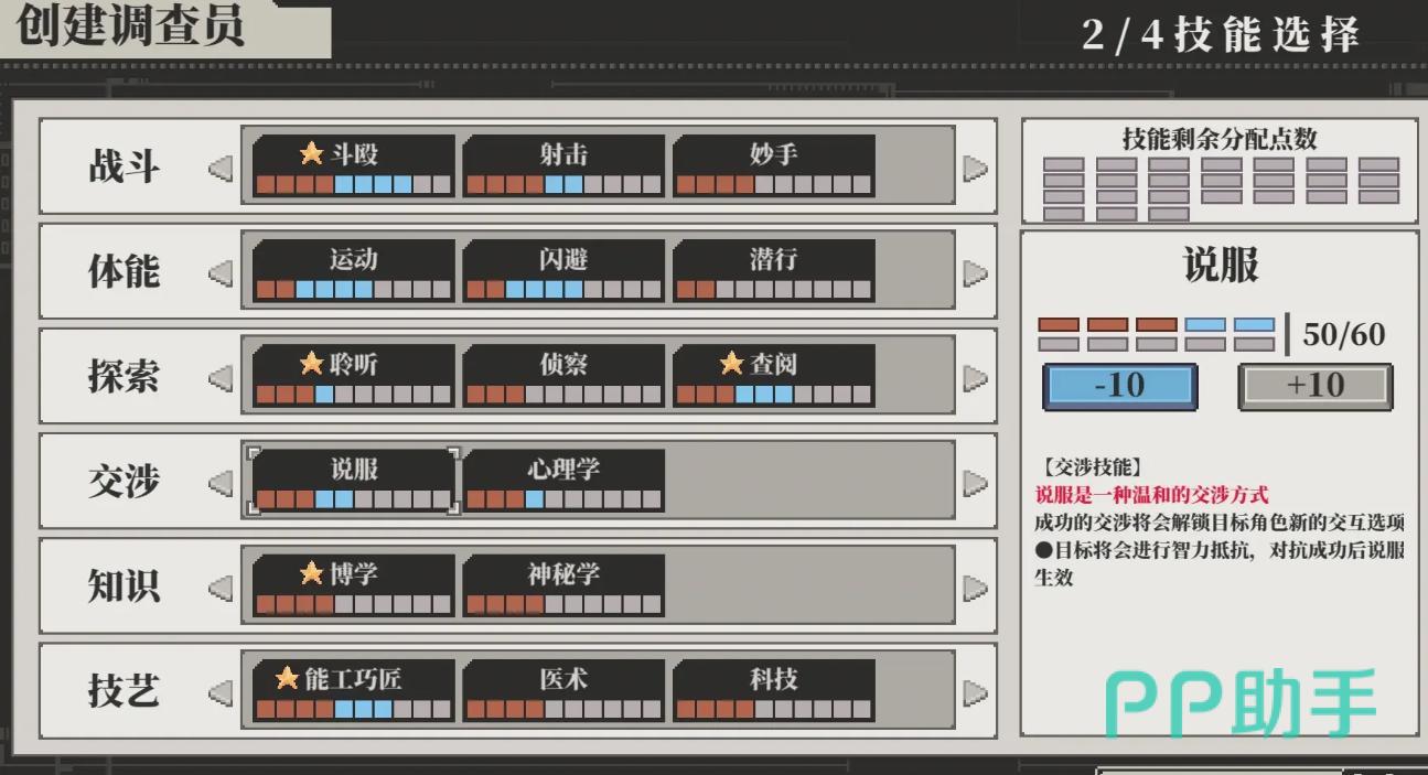 系统设计上,《心之钥》继承并简化了经典跑团规则体系:角色创建阶段引入“卡车机制”用于背景构建;技能树围绕调查、说服、隐匿等实用能力展开;职业设定提供差异化叙事入口;而贯穿全程的骰子检定,则以可视化方式呈现随机性与不确定性,使每一次判定都成为剧情分支的重要触发点。