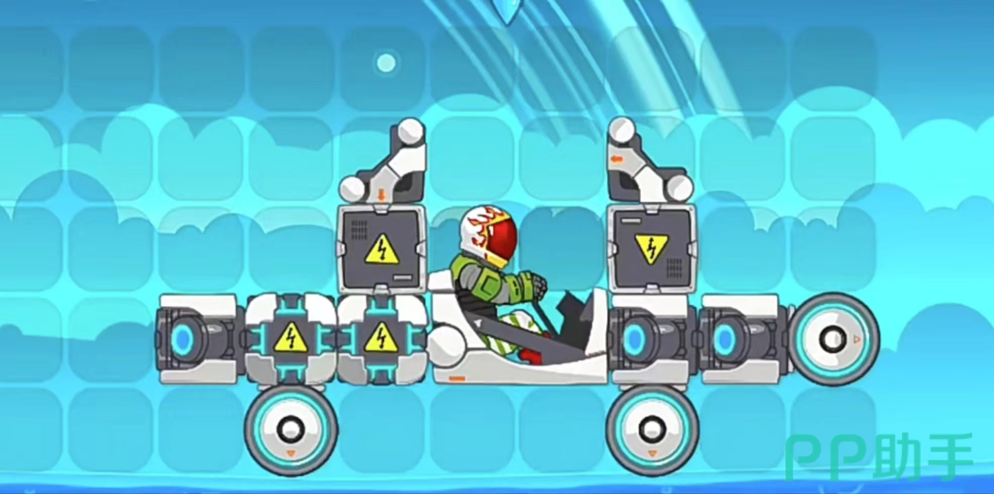 在这关开始之前,大家需要准备好两个高效电池、两个普通电池、三个涡轮发动机、陀螺仪和三个钢轮,这些配件是完成这个关卡必须要准备的。小编的改车方案是这样的:尾部连接两个高效电池,在赛车上方安装两个普通电池,这样的话我们的赛车满足了充足的动力。接下来我们在赛车前面安装两个涡轮发动机,赛车尾部放一个涡轮发动机,最后在车子的上方安装两个三脚架起到保护作用。