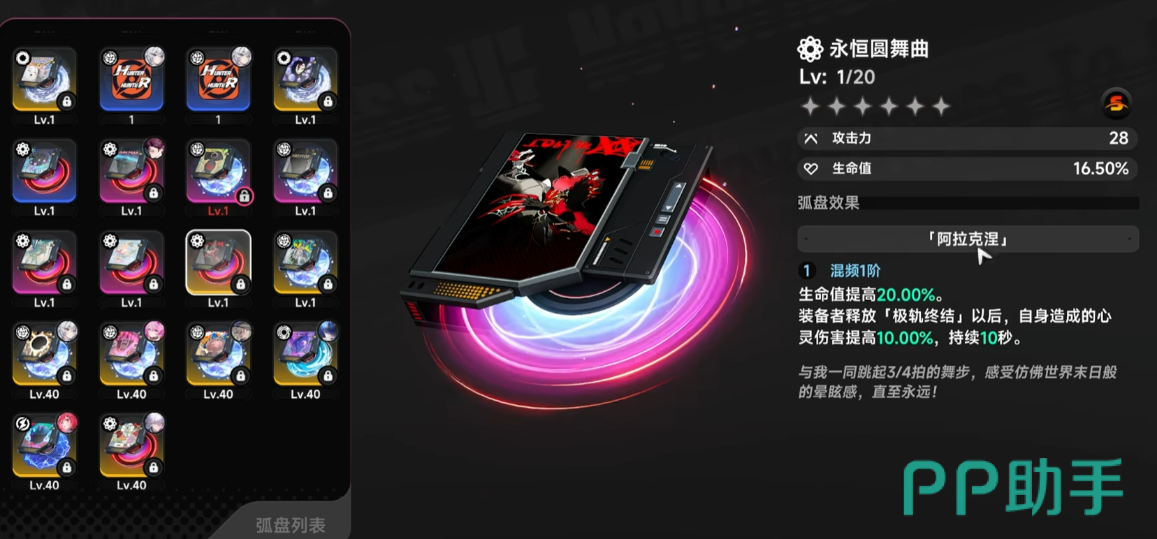 该弧盘核心机制聚焦于“节奏加速”与“群体增益触发”:装备后全队蓄质效率显著提升,大幅压缩关键技能冷却间隔;更关键的是,当佩戴者成功释放极轨终结技时,全队攻击力即时提升10%;若终结技附带控制效果并命中目标,全队额外获得5%攻击力加成。双重增幅叠加使该弧盘成为高难度团队副本与多阶段BOSS战的标准配置,尤其适配具备稳定控场能力及高频终结技使用习惯的角色流派。
