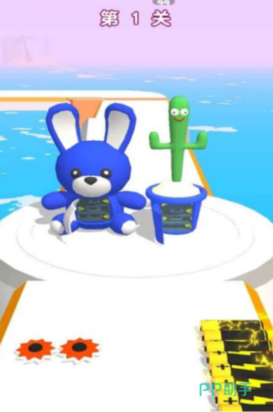 游戏内置6款初始可解锁玩偶,每只均配备独立被动技能:例如增强垂直弹跳高度、延长空中滞留时间、缩短落地硬直帧数等。玩家可在开局前自由选定,效果全程生效。此外,赛道中随机分布三类功能性装置——红色充电桩(恢复能量)、绿色跃迁门(瞬移至下一区域)、蓝色缓速环(临时降低局部区域速度),策略性使用可显著提升通关稳定性。