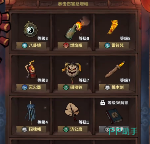 通关首局后,核心成长体系正式解锁。其中“法器”系统为角色能力跃迁核心,达成特定条件后可获取不同功能模块。实测数据表明,“八卦镜”(提供范围反伤与仇恨转移)与“招魂蟠”(增强亡灵单位协同作战能力)在中后期综合强度显著优于其他同类装备,属长线培养优先项。