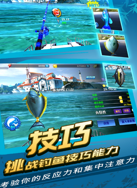 比较耐玩的钓鱼类游戏,采用3d真实环境打造沉浸式钓鱼体验,这款完全免费的钓鱼手游,可解锁全球众多钓鱼圣地,解锁不同的水域场景。比如长江洞庭湖大堡礁等,这些著名的钓鱼地区当中有不同的特色鱼儿,我们可享受别具一格的钓鱼体验。整体简单易上手,只要点击屏幕上的按钮,就能够让悦儿快速上钩。