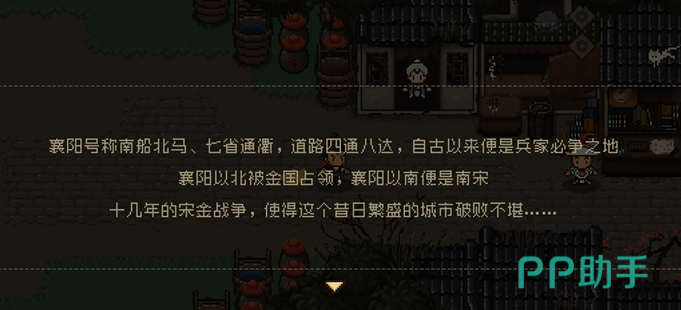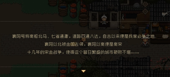 出庙后,你来到襄阳城。在这里,有个大黄狗等着加入你的队伍,但你需要喂它羊肉馒头才能使它愿意跟随你。此时可以先前往城内,搜刮一些物资,和城里的NPC互动。一开始你可能会碰到一些小小的道德抉择,但这些都无关紧要,影响不大。记得多和周围的人交流,尤其是包打听那边的居民,他们能提供一些实用的道具。