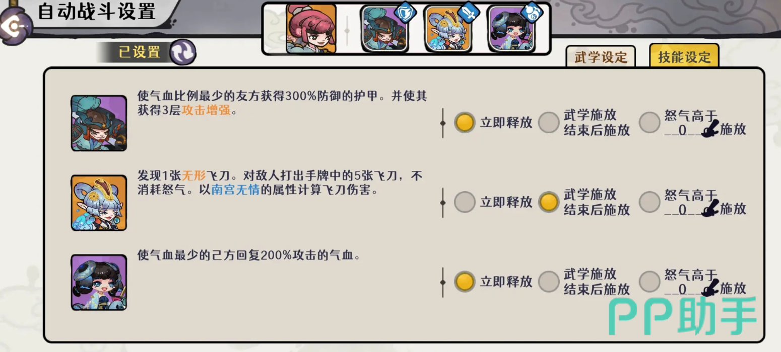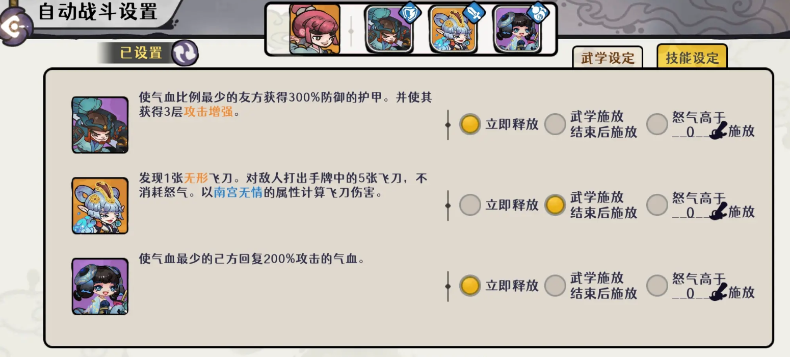 无论是飞刀爆发流还是外功压制流,其实际应用效果均高度依赖对角色技能机制、怒气流转路径及武学卡牌协同逻辑的深度理解。建议玩家在配置过程中重点关注各角色技能释放顺序、怒气阈值节点与手牌调度节奏,避免单纯堆叠数值而忽视体系运转本质。在当前版本环境下,这两套阵容已通过大量实战检验,具备较高的泛用性与战术延展空间。