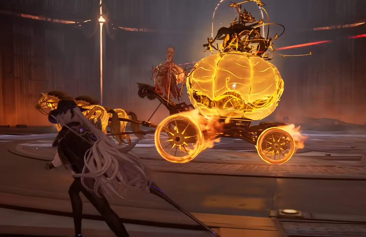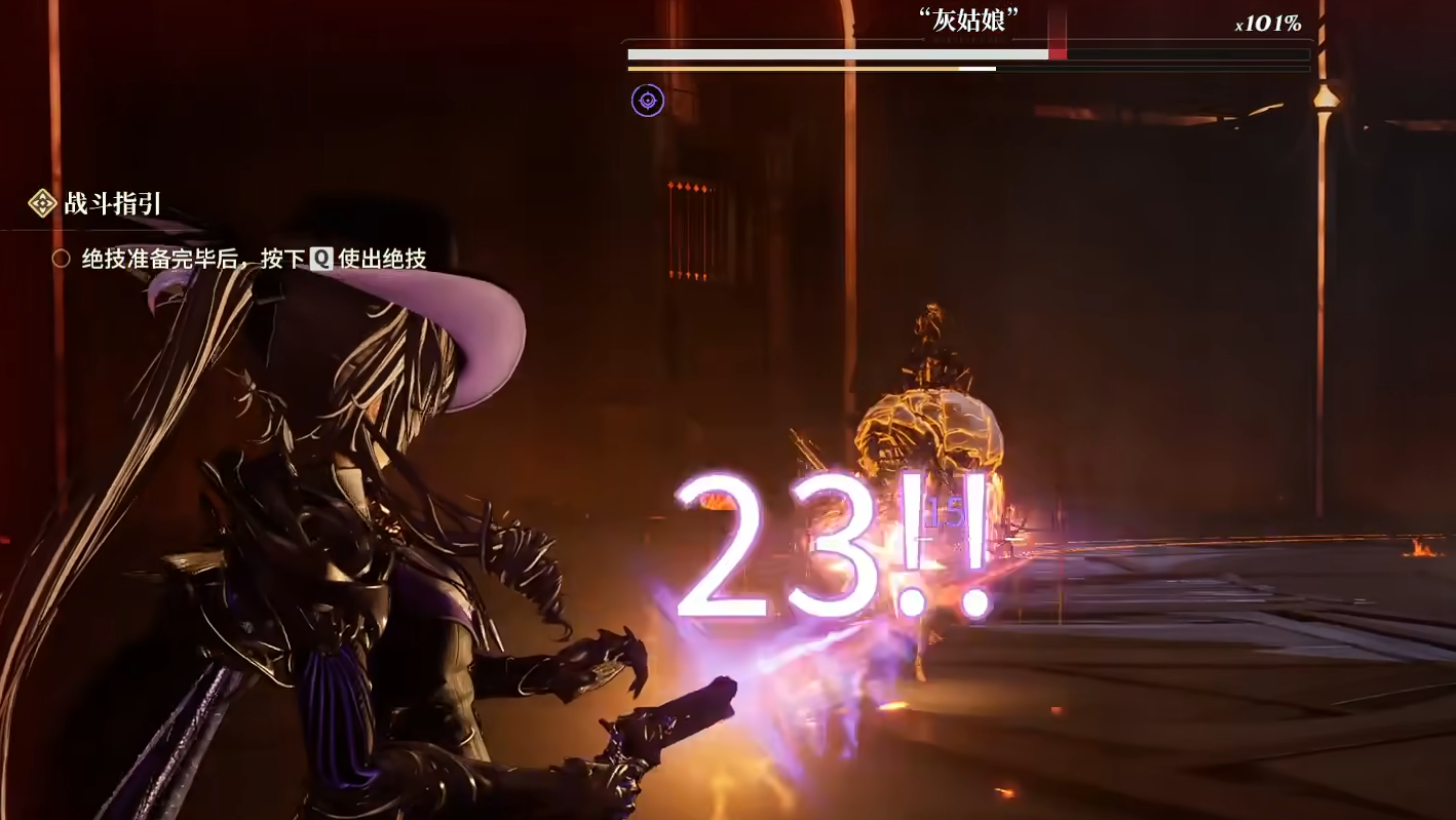灰姑娘登场时具备强视觉压制效果:自高空急速坠落,伴随标志性狂笑,并策马发起首轮冲锋。此时她周身会同步浮现两道环形能量光圈,需立即按下Shift键执行闪避动作。成功规避后,迅速使用冲刺键贴近其本体,衔接普攻连段,可打出可观伤害。需特别注意——她周身环绕的火焰仅为特效表现,不附带实际伤害判定,无需额外位移规避。