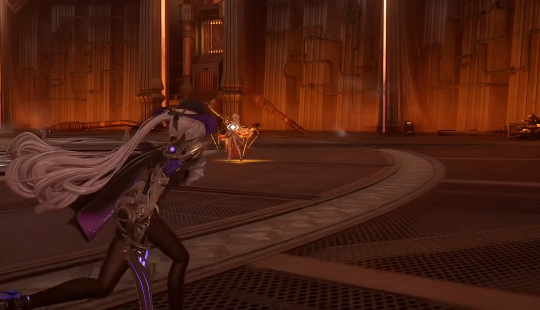 随后她将切换轻机枪模式,实施大范围扫射。此时应以小幅度高频横向位移为主,杜绝直线奔跑,确保始终处于动态规避状态。待其战马再度突进时,优先侧向闪避,随后快速贴身输出。但需警惕其数秒后的滑铲反制技——可通过提前补给药品或精准闪避化解。此后她将进入高速绕场机动阶段,配合车载武器持续压制;车辆冲撞前兆明显,只需在撞击瞬间执行闪避即可完全规避。当其准备释放重击时,身体将泛起黄色预警光圈,此时触发闪避指令可实现完美格挡,大幅降低受创风险。后续空中火焰雨仍会周期性出现,按既定走位逻辑规避即可。此外,可适时切换至轻机枪模式进行中距离火力压制,尤其在其防御解除阶段,远程输出效率显著提升。