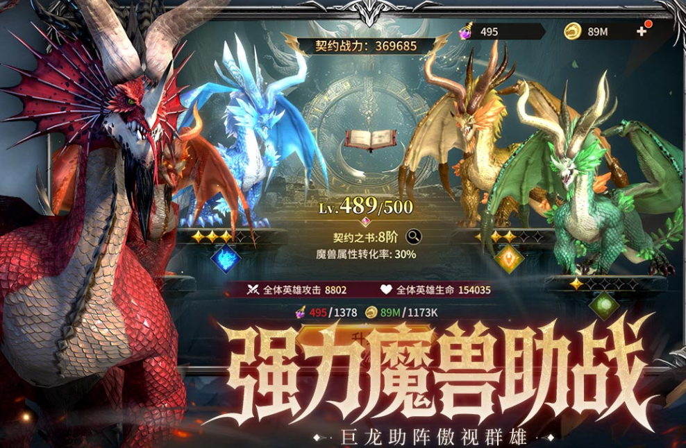 这些资源直击核心养成环节:高能晶石用于英雄突破,灵物秘轴与心灵水晶支撑灵物系统深度强化,进阶石加速装备升级,海量金币则覆盖日常消耗与技能研习。在副本体系中——包括每日挑战、资源刷取本、传说巨龙专项攻坚等多样化关卡——前期积累的资源将显著缩短发育周期,助力玩家更快解锁稀有装备、提升角色等级、激活魔兽主动/被动技能,从而灵活调试阵容应对不同机制敌人,真正实现“策略驱动成长”的设计逻辑。