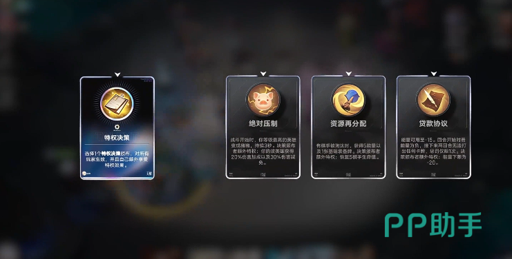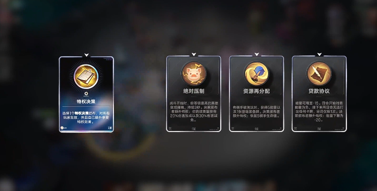 嬴律的天赋系统在角色升至6级后解锁,共提供三项特权供玩家择一激活:其一为提升己方英雄基础伤害;其二为降低自身受到的伤害;其三为恢复5点棋手生命值。三项特权均服务于不同实战场景——高输出阵容可选伤害加成;高压环境建议启用减伤或回血选项。激活任一特权后,嬴律的能量下限将调整为-20,大幅拓展其技能释放容错率与策略试错空间,使玩家在复杂局势中保有更强的操作主导权。