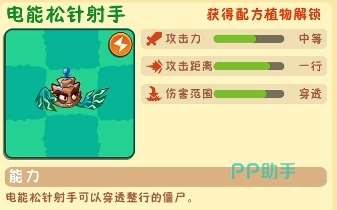 松针射手发射细长而锐利的松针,可穿透多个目标形成贯穿伤害。激活叶绿素后,攻击频率翻倍,短时间内倾泻大量弹药,压制力大幅提升。装备玉米卷后,松针具备更强的穿刺效果,击中目标时还会爆裂出尖锐碎片,对周围僵尸造成二次溅射伤害,实现范围清场效果。