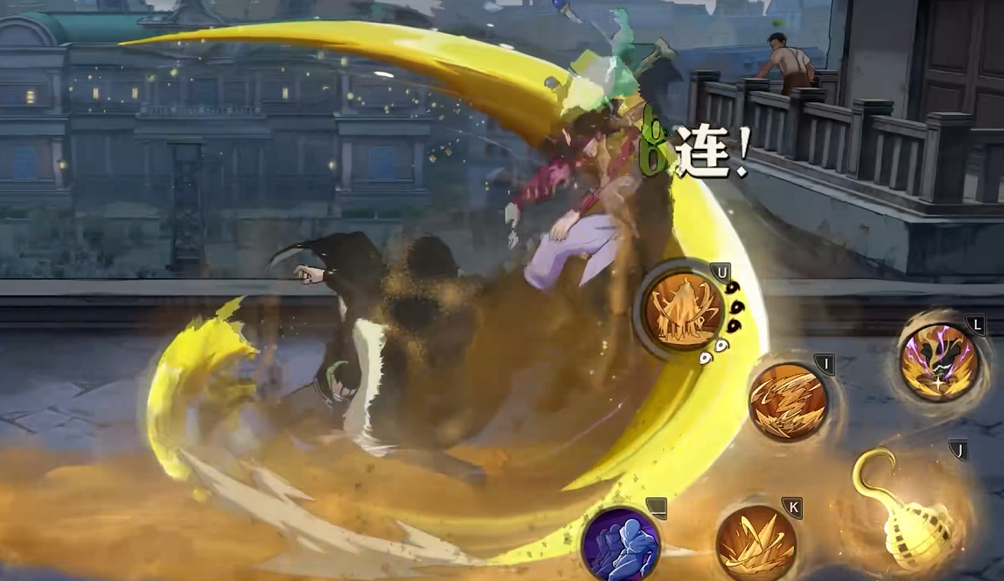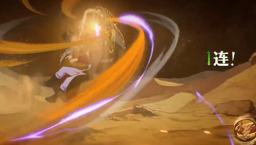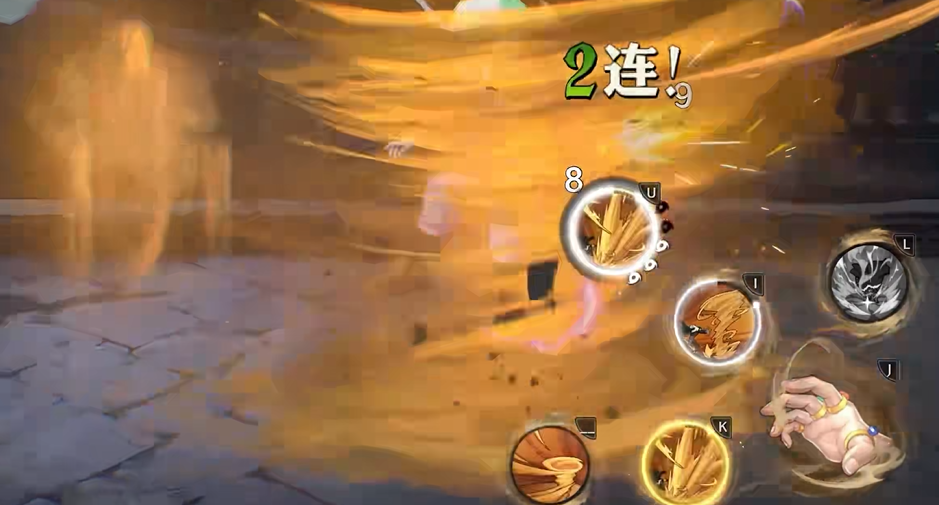 一技能在常态下表现为地面重击→沙流突进→沙漠大剑擒抱三段式结构,命中后生成沙地地形。进入强化形态后,技能前摇变为沙刃横斩,随后进入元素化状态召唤大剑,期间支持摇杆微调攻击落点。若大剑成功捕获目标,界面将弹出替换技提示,点击即可触发升空技“沙漠金刚宝刀”,自上而下造成追加范围伤害,形成灵活可控的连招分支。