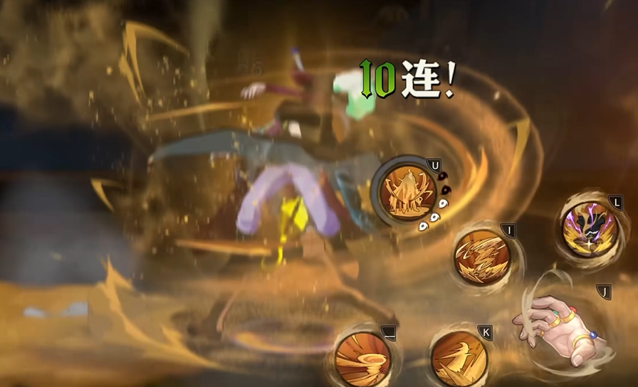 强化状态下普攻重构为四段:第一段变为双推掌连击,长按增强突进距离;第二段扩大攻击半径并附加爆炸浮空效果,落地后残留沙坑地形;第三段跃击实现元素化穿透,钩爪判定保留全向抓取能力;第四段释放追踪型“元素月牙斩”,自动索敌并提升命中稳定性。