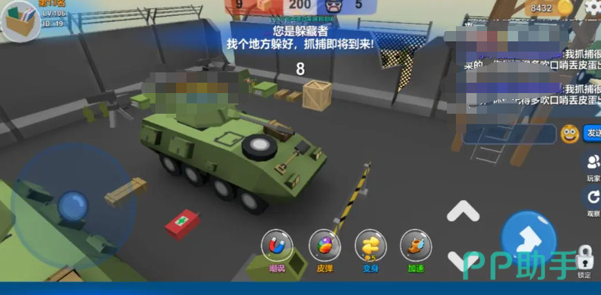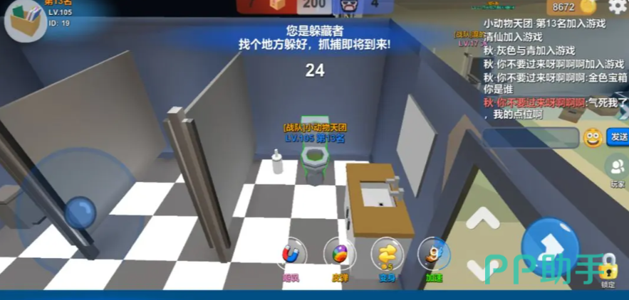 躲猫猫大乱斗联网版操作比较简单,如果玩家在体验时选择的是躲藏者,这时候直接借助摇杆移动,然后点击伪装,此时玩家就会变身为物品。而另外一方那就是寻找者就需要通过攻击跟道具来进行互动。在躲猫猫的时候不要忘了规定的时间,整个游戏一局只有3~5分钟,所以玩家如果在空闲的时候,想要体验游戏倒是可以直接选择它,毕竟它能够达到碎片化的娱乐价值。