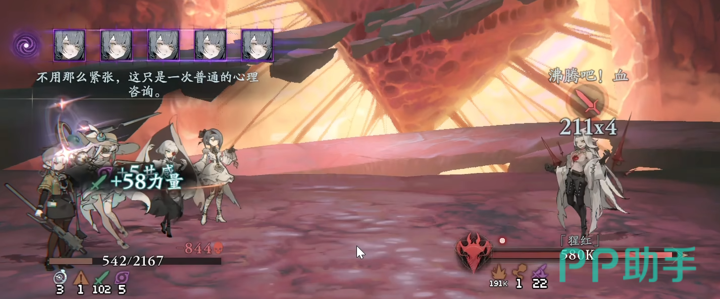 主动技能方面,“人间爆破”视为打击,对全体敌人造成两次伤害;“风暴冲击”同样归类为打击,随机选取敌方目标发动5次伤害,并额外获得20点狂气。“戏剧性邂逅”的追击机制为:每打出2张打击牌,即自动发动1次追击,强化连段节奏与输出密度。