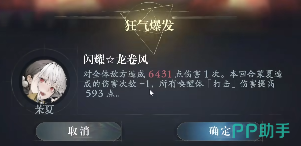 茉夏的核心资源为“狂气”,初始通过“雾境遗脉”稳定获取25点。其奥义“狂气爆发”可对全体敌人造成伤害,并使本回合所有唤醒体的打击伤害提升。被动“戏剧性邂逅”在觉醒后,使该效果触发时的伤害次数+2;每次触发均使茉夏当次打击卡的临时最终伤害提升25%。
