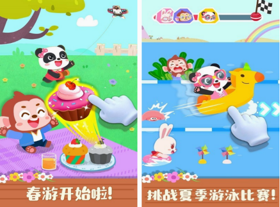 对于小宝宝来说,对四季到底都是怎样的,没有什么概念,但是通过这款游戏以后,就能更好的学习。通过认识自然的天气表现,知道属于哪个季节的,每个季节都可做什么事情。如在春节时,绿色的植物会开始生长,花朵也会渐渐的开放,在进入夏季的时候,宝宝能通过游泳比赛享受欢乐。