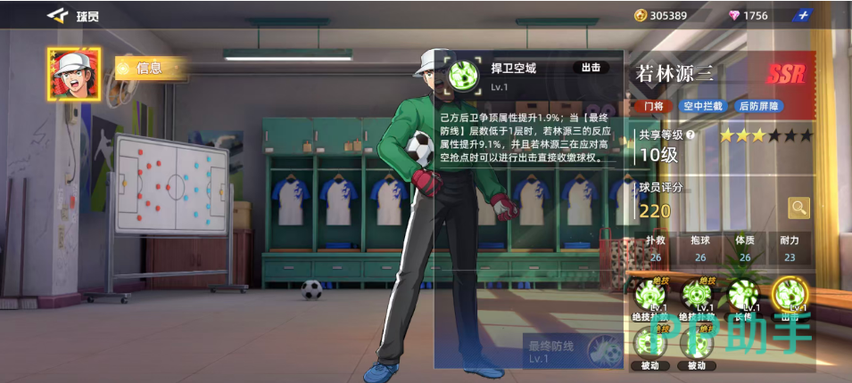 “捍卫空域”则是若林源三主动出击的关键技能。使用后可小幅提升己方后卫的争顶能力(+1.9%),更重要的是,当【最终防线】层数不足1层时,自身反应属性提升9.1%,并在高空对抗中可直接夺回球权,极大增强了禁区内的控制力。