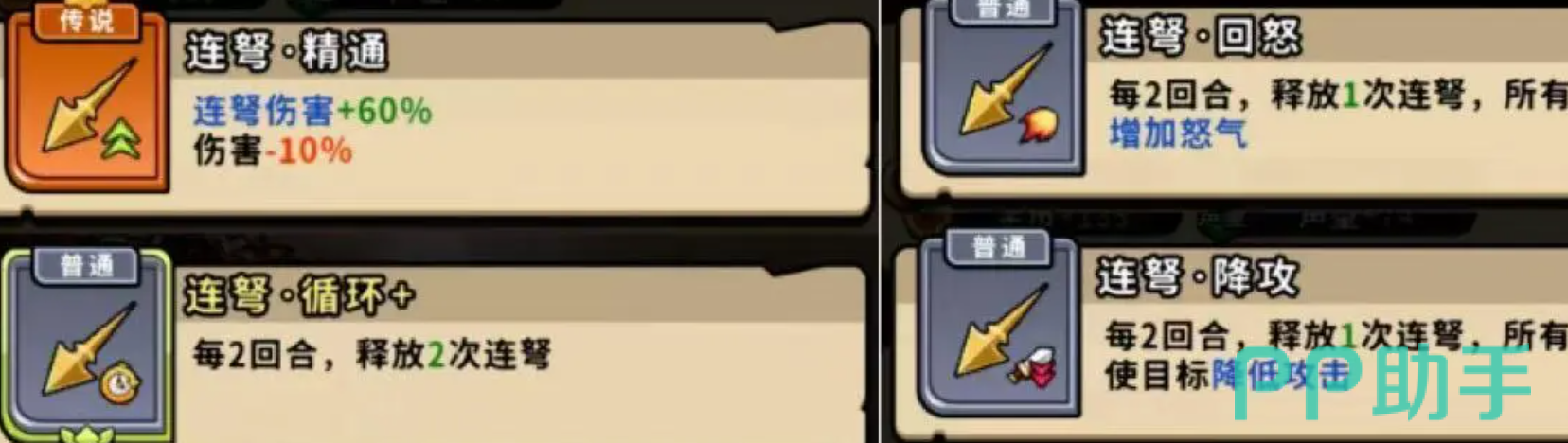 连弩类的计策技能,其特征是每个回合,都会有稳定的触发,同时,具备有多样化的buff增益,属于增伤辅助类的计策,容错率非常高,很适合持久战,但是在高难度副本当中,会因为续航能力不足,而毙命,整体强度位列T2级别。
