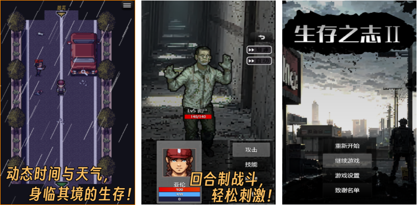 这是款具备着动态生态环境和回合制玩法的生存游戏,搭配各种武器回合制与僵尸战斗的玩法很刺激,生存环境极端恶劣让许多生存爱好者流连忘返,昏暗的环境呈现跟诡异的吼叫声都令人血脉喷张,背景呈现暗黑深沉呈现出末日的绝望,支持单机操作可随时载入游戏体验未完成的冒险之旅。