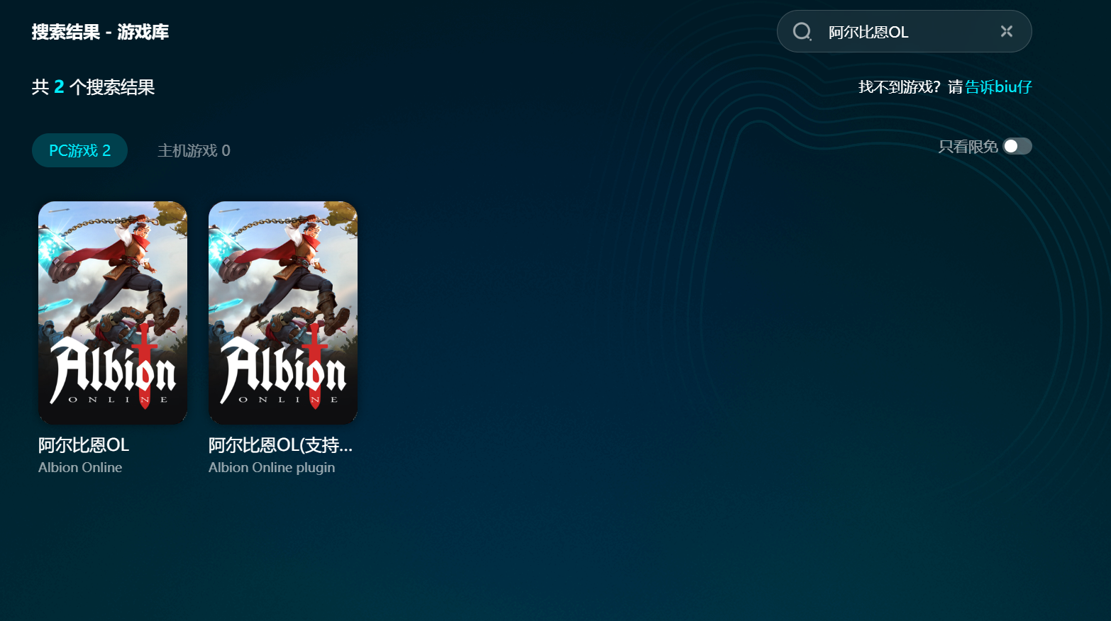 阿尔比恩OL国服的游玩人数并不多,多数还是在外服以及国际服的玩家较多,这使得国服联机的时候要找好久的队友,但是国际服就能迅速找到队友,同时更新频率还比较快,就是在国际服有一个问题,就是网络特别容易卡,而且一卡就是好几个小时,根本没法正常游玩,biubiu刚好是支持绝大部分的国际服的。