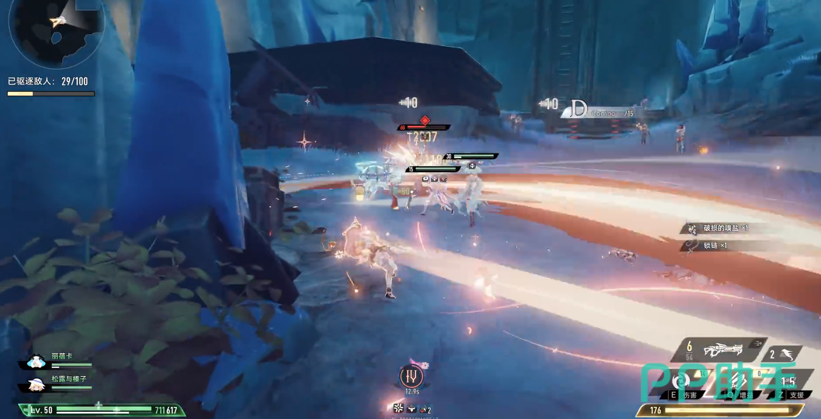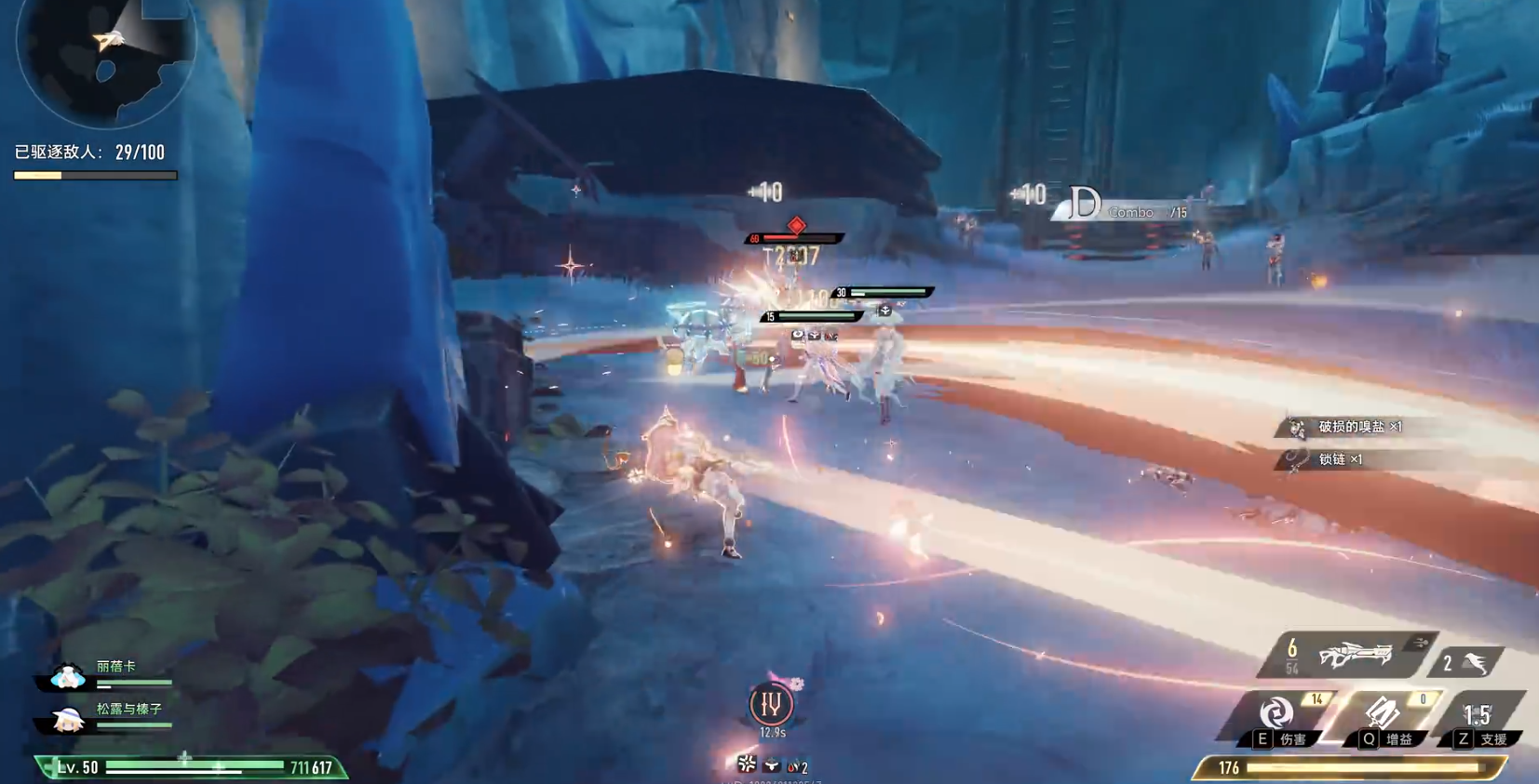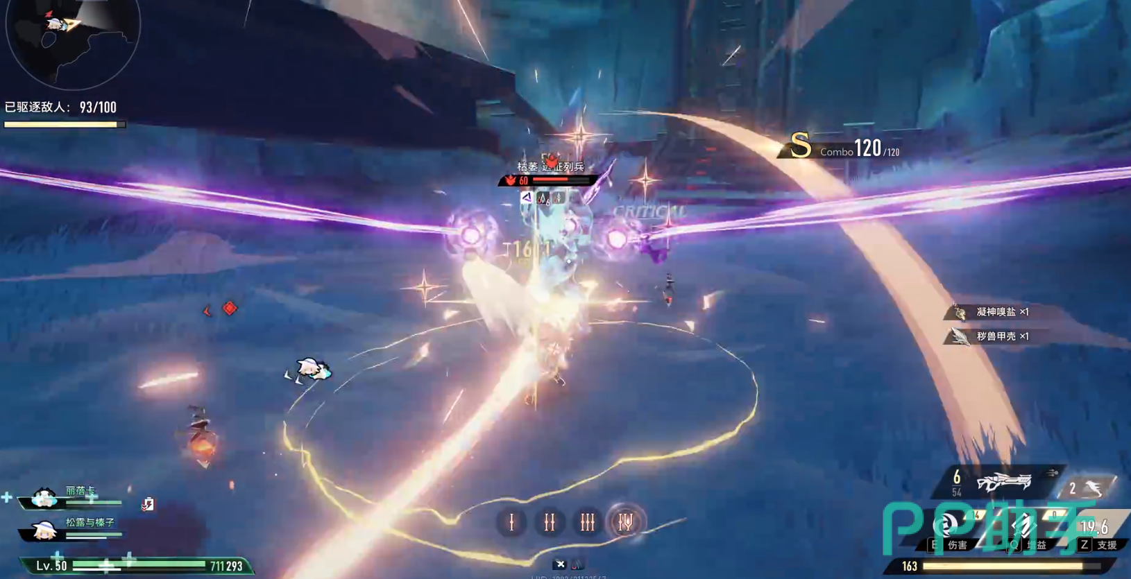 核心输出来源于终结技“技我不忍啦!”,开启后切换为同律武器形态,进入高爆发阶段。在此状态下,通过蓄力攻击消耗神智来累积连击点数,连击等级越高,蓄力伤害倍率随之递增,上限极高。被动技能进一步优化了这一机制——随着连击等级提升,不仅扩大了同律武器的攻击范围,还提高了特殊效果触发概率。即便在消耗连击等级后,部分增益仍可持续一段时间,合理堆叠技能耐久即可延长强势期。