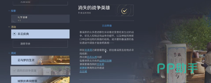 首先,请打开游戏大地图,传送至溯洄营地。抵达后沿右侧台阶向上行进,即可发现NPC白露。与其交互后自动接取任务,并获得初始线索道具。随后打开任务日志,向下滑动至底部,定位“消失的战争英雄”任务条目。该任务共需前往5个指定场景,分别拾取1件专属道具,集齐全部5件后方可推进至下一阶段。