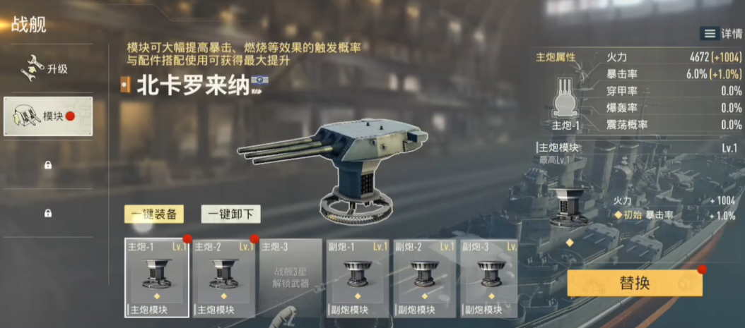 战舰养成遵循阶段性成长模型:等级达20级、30级、45级时分别开放进阶突破节点。前期资源应优先投入火力强化方向,重点装配主炮与副炮类模块——每件主炮模块提升基准伤害系数,副炮模块则增强近距离压制能力与目标切换响应速度。模块组合策略直接影响实战中的有效射程覆盖与弹幕密度表现。
