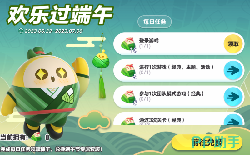 活动期间,玩家不仅能享受比赛的乐趣,还能通过完成任务获得丰厚的奖励。从6月22日到7月6日,参与【欢乐过端午】活动,每日完成任务就能获得粽子,兑换端午专属的节日套装“努力高粽”以及各种炫酷表情和头像框。套装、头像框、昵称框,样样都很有节日气氛,穿戴上它们,仿佛就能感受到粽叶飘香的温暖。