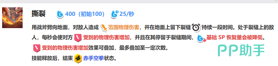 在技能机制方面,“撕裂”是戴安娜的重要辅助手段之一。当该效果被激活时,她会挥动战斧劈向地面,形成一道持续存在的裂缝,对范围内敌人造成物理伤害。裂缝存在期间,所有靠近的敌人都会受到额外物理伤害加成,并同时降低自身技能能量恢复效率。因此,在敌人密集区域释放此技能,能最大化战场压制力。