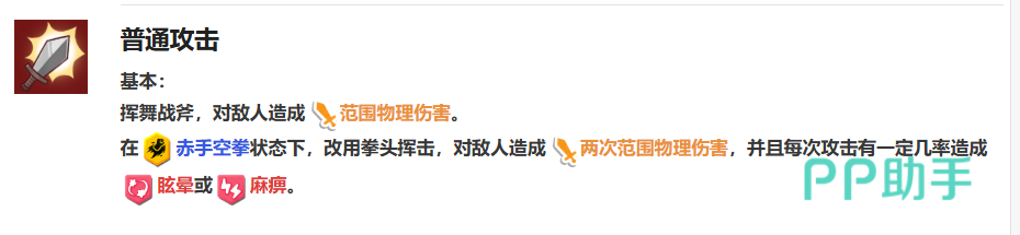首先来看“往昔”状态下的戴安娜,这一形态更适合部署在前排位置。此阶段的她主要依赖物理攻击输出,普通攻击会使用战斧对敌方单位造成伤害,且普攻附带小范围群体打击效果,清场能力较强。若未装备武器处于徒手状态,则以拳击方式进行反击,每次出拳可触发两次独立伤害判定,具体数值受攻击方向影响而有所变化。此外,她的基础攻击还存在一定概率附加控制效果,如眩晕或麻痹,能够有效打断敌人节奏。