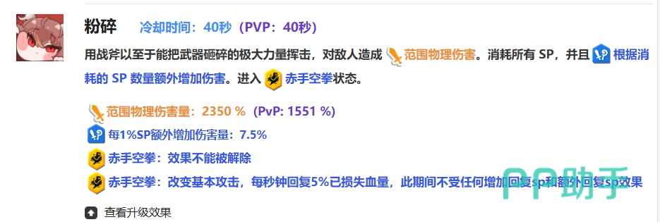 而“粉碎”则是戴安娜的核心爆发技,需消耗全部技能点才能释放。该技能造成的伤害值与已积攒的能量成正比,能量越多,最终爆发越高,适合在战斗尾声用于收割残血目标,属于典型的高风险高回报型终结技。