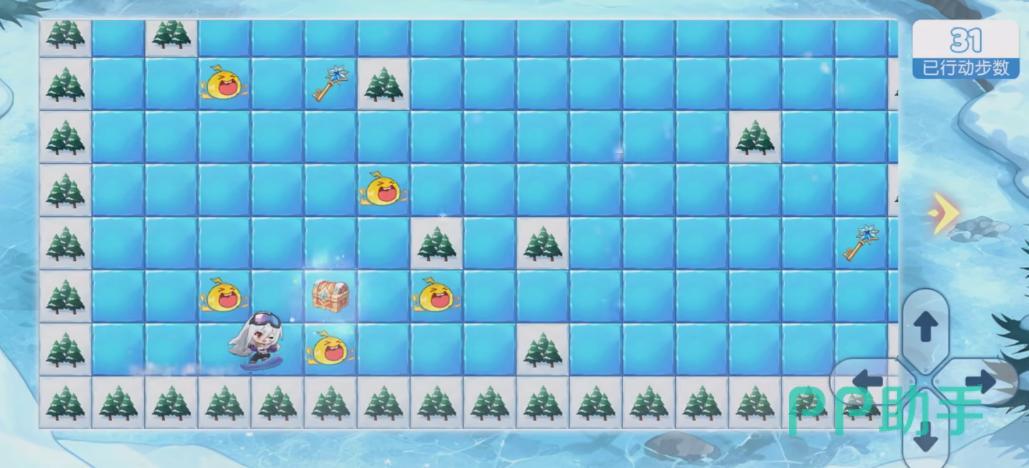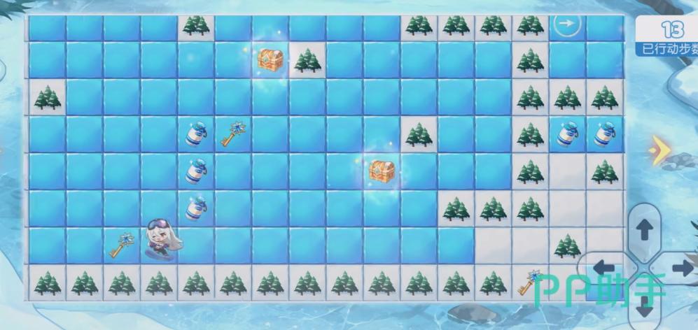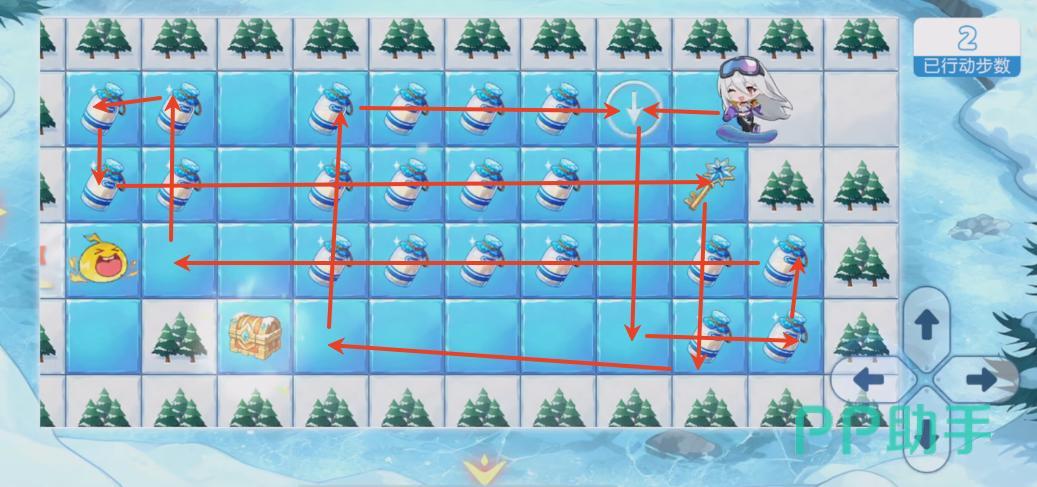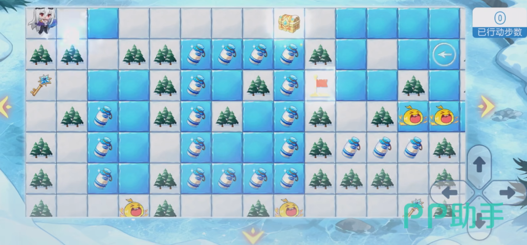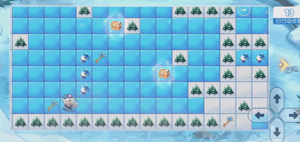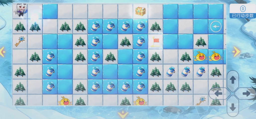 本玩法核心目标明确:在有限步数内,按顺序拾取全部“奶瓶”,最终抵达终点。所有角色在无阻挡的冰面上将保持惯性滑行直至撞上边界障碍(如树干)才停止,因此每一步移动方向与起始位置需精确预判。首关地形简洁,推荐采用“右→下→左→上”路径组合,可稳定完成全部奶瓶收集并停驻终点。