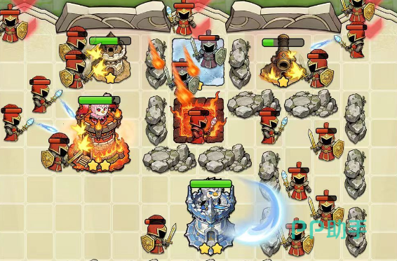 战斗系统强调地形协同与机关联动——火焰陷阱、尖刺陷阱等环境装置可与防御塔形成连锁反应,配合石块障碍物的合理布局,有效延缓敌方推进节奏,放大单点火力输出效能。不同塔种之间存在克制关系与范围叠加逻辑,玩家需依据关卡波次特性动态调整布阵策略,实现从被动防守到主动控场的战术跃迁。