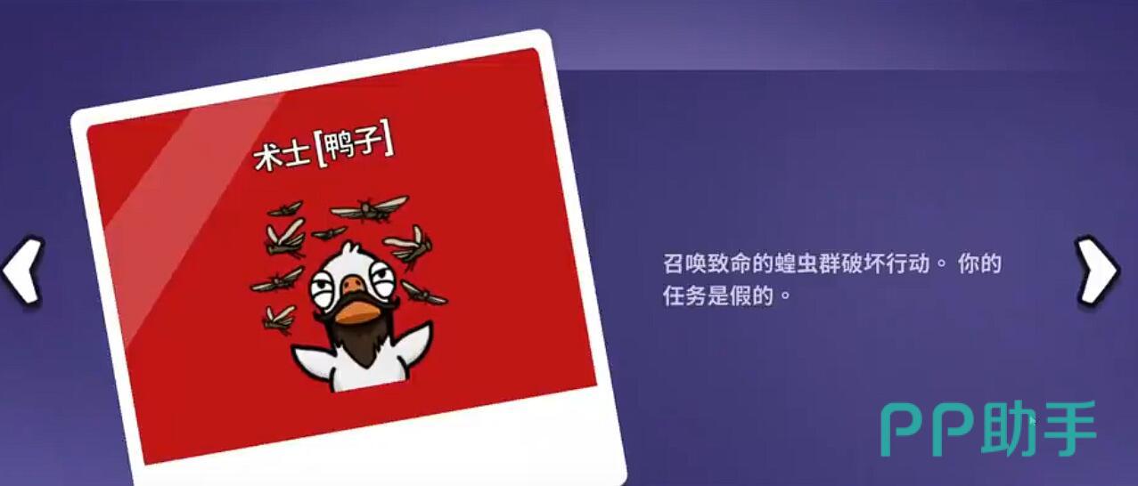 术士无法在游戏初期立即使用技能,必须先完成指定任务,否则将只能作为普通鸭子参与行动。其核心技能“召唤蝗虫群”属于范围性AOE攻击,但释放窗口极为有限,仅能在“刀人结束倒计时”阶段激活,错过则无法使用。此外,技能触发后存在1至2秒的延迟生效期,期间房间内玩家有机会逃脱。因此,必须由刺客或专业杀手等具备封门能力的队友提前关闭目标房间出口,才能确保技能命中并造成有效击杀。