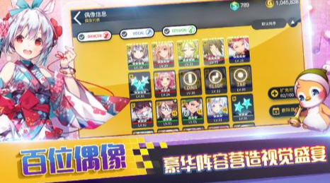 这里所包含的偶像超过50多位游戏会不定期更新推送出众多ip,可与众多艺人进行合作,以音乐为主题的特色偶像游戏内置大量高质量3d动画,演奏歌曲之后,众多精品动画都会免费解锁。有服装商店可购买不同特色服装,还能够更改服装颜色。多样化玩法与特色,采用相当出色的q版造型,给玩家带来华丽的视觉盛宴。