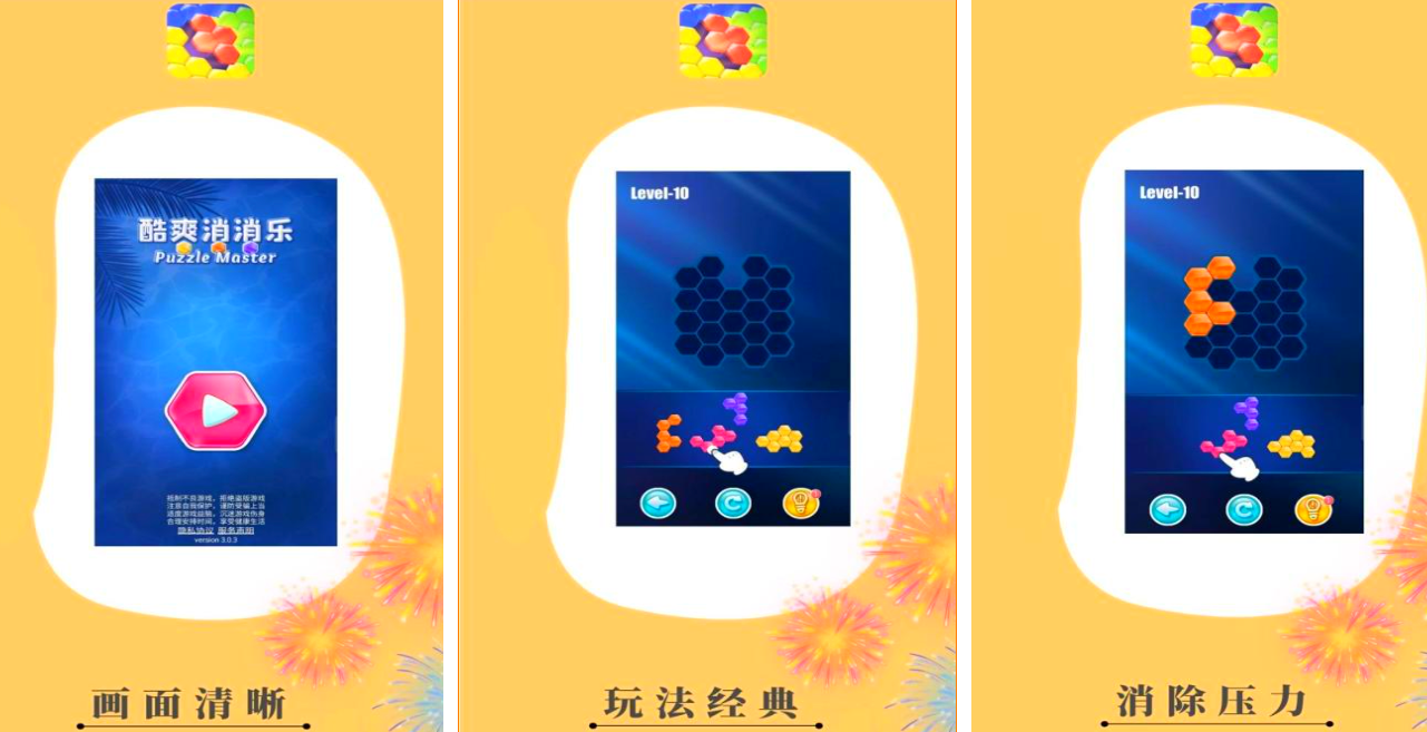 一款简单有趣的休闲消消乐手游,玩法简单且关卡道具很丰富,没有过多的模式但是乐趣同样十足。玩家们需要将不同形状的小方块填充到棋盘中,确保每个方块不会重叠并且将棋盘全部填充满即可。游戏的难度层层递进,让玩家不断思考完成难题的办法,这种能够不断解谜然后挑战成功的方式让玩家成就感不断强化,解压效果也非常明显。