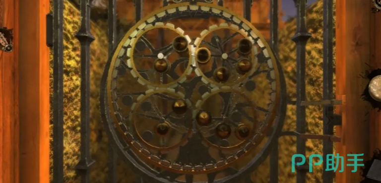 旋转按钮和头顶的鸟笼子,再旋转雕塑凤凰的头部,会得到翎羽,回到初始地方,关上门,要记住密码哦!找到密码门,拉动拉杆,花盆就会移动。