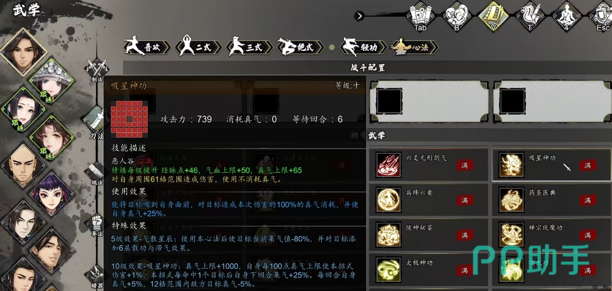 吸星神功并非通过常规技能树解锁或商城购买获得,而是严格绑定特定剧情节点。当角色推进至游戏后期主线阶段,触发荀杳杳相关支线后,系统将弹出明确提示:“可向荀杳杳请教上乘内功”。此时须立即选择对应对话选项完成习得,错过该窗口期将无法补获。成功习得首层后,角色基础属性即产生显著变化:经脉强度、气血上限、真气上限同步提升;同时每次施展时,以自身为中心对周围3格范围内敌人造成无视防御的持续真气伤害,且全程不消耗任何真气值——这一特性极大强化了连招容错率与战场机动性。