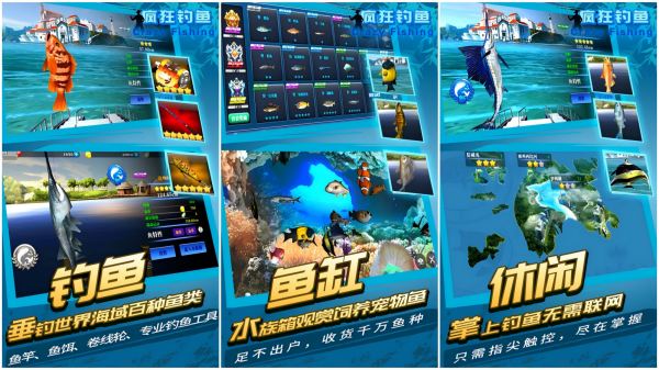 它是一款钓鱼题材的休闲小游戏,逼真立体的垂钓场景、丰富多样的鱼种,令大家可以拥有极致舒适酣畅的垂钓体验。各位热衷钓鱼的小伙伴,千万不要错过《疯狂钓鱼》这款有趣手游。3D立体的氛围营造,令诸位在手游端便能感受极致震撼立体的游戏效果,遍布世界各地的垂钓胜地都在此呈现,上一秒各位还在长江旁钓鱼,下一秒便可以穿越到洞庭湖畔。