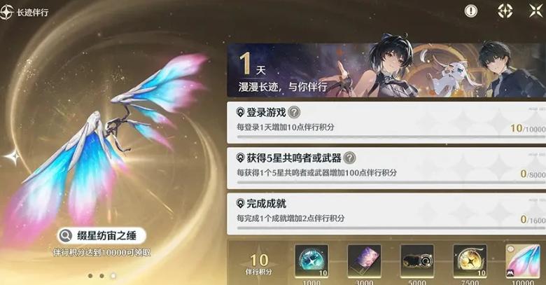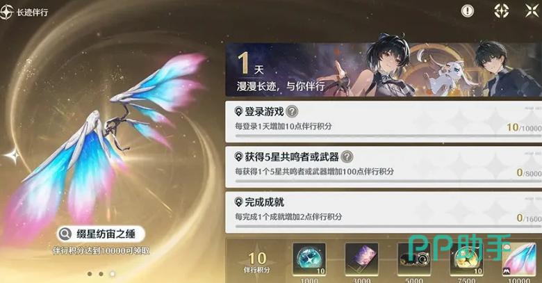 【长迹伴行】:该系统为长期成长型回馈机制。玩家通过完成伴行任务积累积分,达成指定档位后可依次领取10个常驻抽、新印章、限定称号、10个限定抽及典藏级滑翔翼皮肤。此外,获取5星角色回音频段、5星武器均计入积分,后续还将开放更多兑换项,积分上限亦会动态提升。