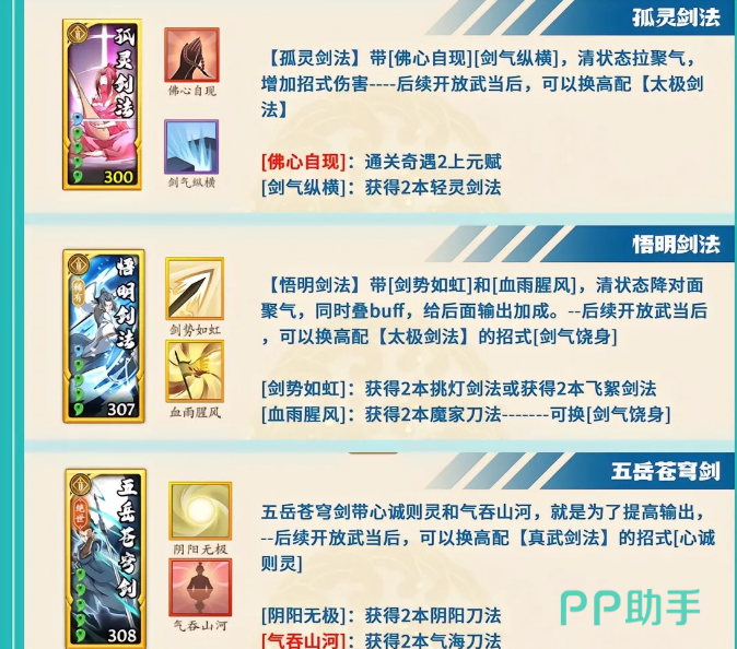 6个外功是必须要的一个都不能少,太极主要是可以解除掉控制辅助其他功法的输出,五岳和孤灵相继输出然后第四个出幻影,其实顺序都是大家常出的,第五个肯定就是悟明它可以帮忙聚集气,还可以增加对对手的伤害值,流云也是主打聚气的而且没那么多限制。