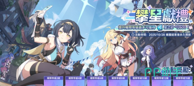 除了基础福利外,本次活动还推出了“攀星献礼”奖励机制。每当权限等级提升,玩家即可额外领取12,600个星之砂。从二级到十五级,每升几级便可获得1800个星之砂,累积后可用于抽卡或角色培养,性价比极高。同时,参与“幸运寻宝铲”活动并完成指定任务,还能获取积分,用于兑换实用道具,例如真格拥冠礼盒等。这些资源几乎等同于免费赠送,切勿错过。