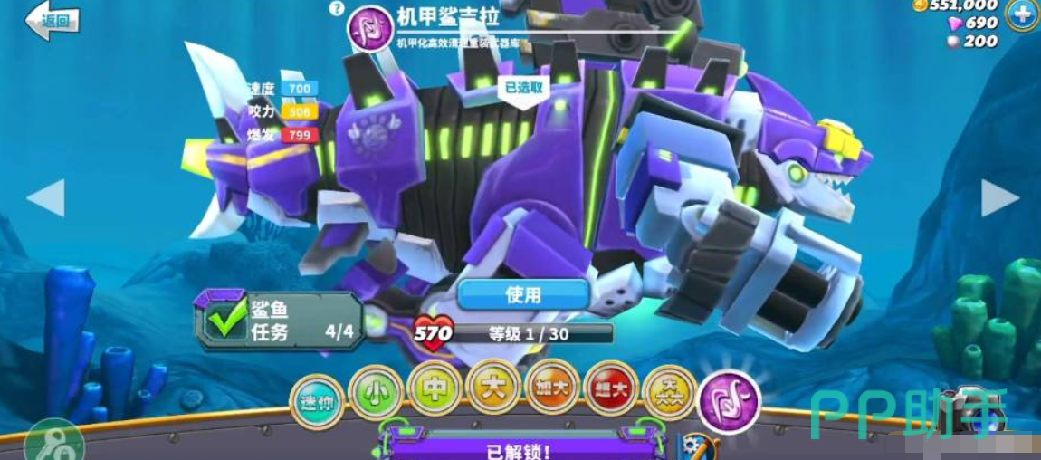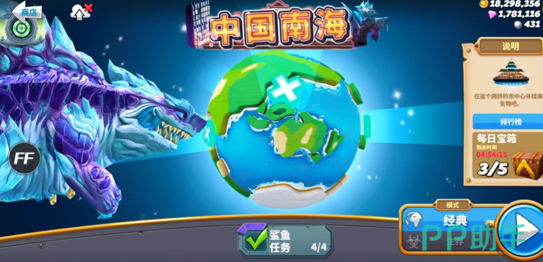 真鲨吉拉的进阶技能包括长程范围模式,这是一种强化攻击,可以在游戏中通过达到里程碑分数来解锁。在这个模式下,真鲨吉拉可以生成水晶并使用它们来发射导向导弹,这些导弹可以追踪并攻击远处的敌人。而真鲨吉拉还有一个独特的技能等级系统,包括扔手炮、俩蜉蝣轰炸和三个蜉蝣放激光,这些技能的冷却时间会逐级增长,而且真鲨吉拉还可以通过吞食特定的金色鱼类或宝藏来获得金币和升级点,这些资源对于提升真鲨吉拉的属性和技能都是必须的,大家要着重寻找。